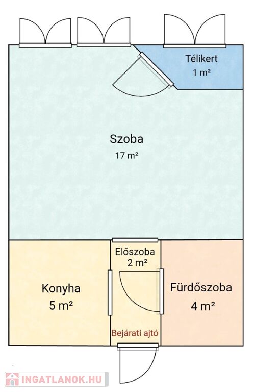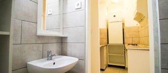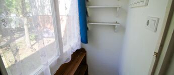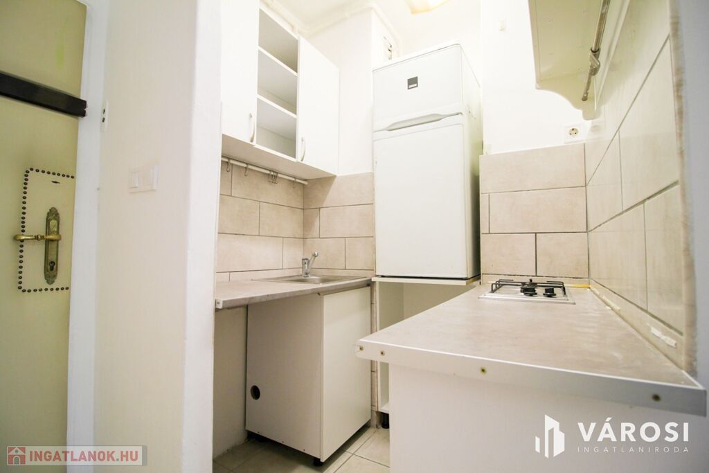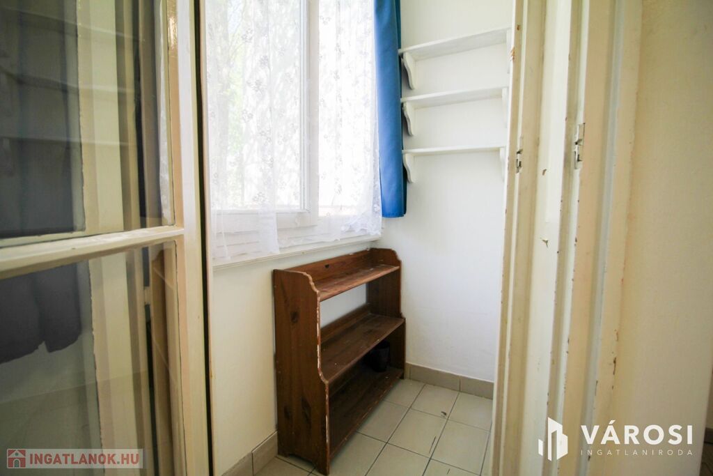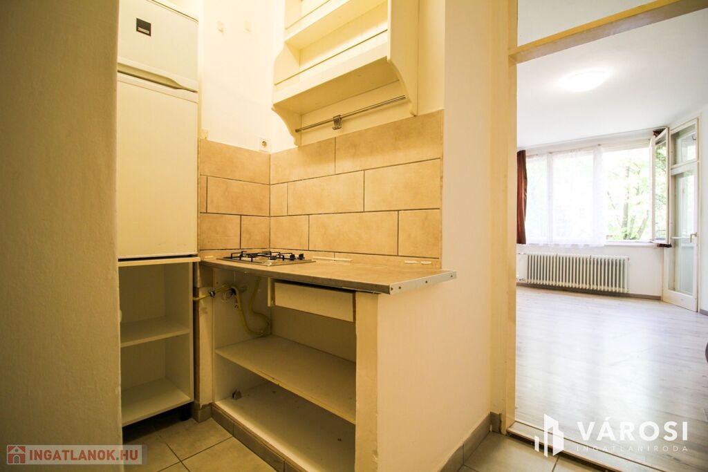 A szoba tágas és napfényes, az előszobából nyílik a minimalista konyha és a zuhanyzós fürdőszoba. Hűtőszekrény, gáztűzhely, tv és internet található az ingatlanban, a bútorzatot egy kinyitható kanapé és egy kör alakú étkezőasztal alkotja két székkel. Különlegessége egy elbűvölő kis télikert, ahol nyugodtan elfogyaszthatja a lakó a reggeli kávéját, miközben belemerül a természet látványába az otthon kellemes melegéből. A fűtés házközponti távfűtés. A lakás délnyugati tájolású, így mindig fényes és az est közeledtével is élvezhetőek a nap sugarai.