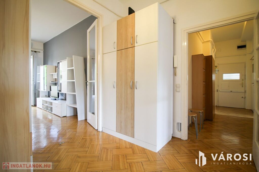 Teljesen bebútorozva és gépiesítve bérbe vehető. A három szoba úgy van kialakítva, hogy az egyiket nappaliként, a másikat hálószobaként, a félszobát pedig dolgozószobaként lehet hasznosítani. A wc külön van a fürdőkádas fürdőszobától. A modern konyhából pedig nyílik egy kamra. A hőmérséklet gázkonvektorral és klímával szabályozható. A nyílászárók újak és jól szigetelnek, az ablakok redőnyözöttek. Erkélyek találhatóak nyugati és keleti irányba, az egyik belső udvarra és a budai hegyekre néz, a másik zöldesített, csendes utcára.