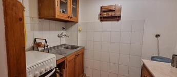 A lakás teljesen berendezett, mosógéppel és hűtővel felszerelt.