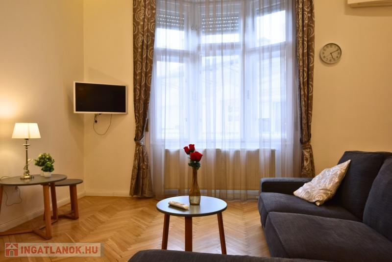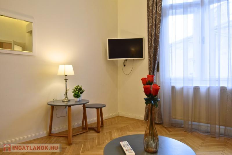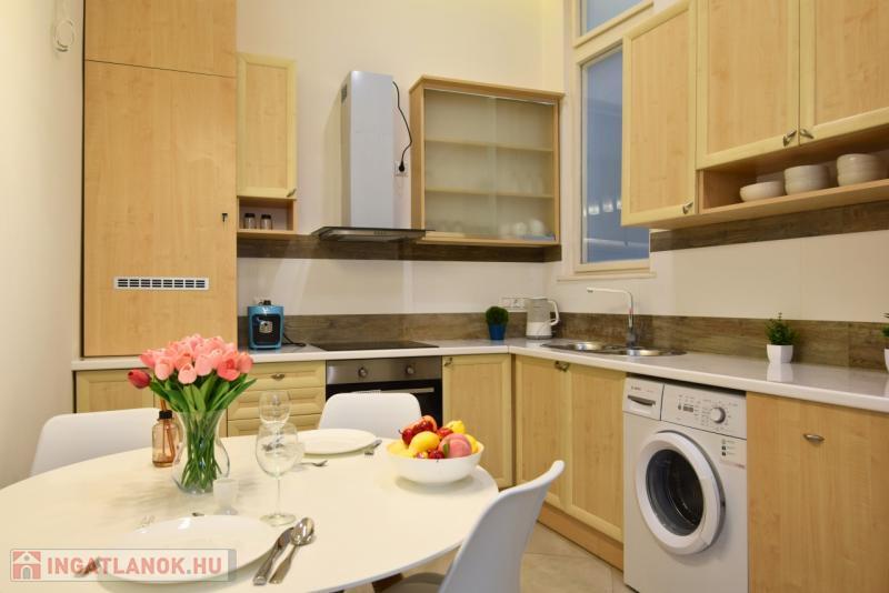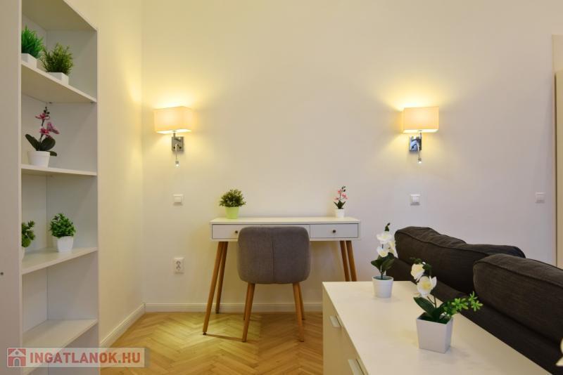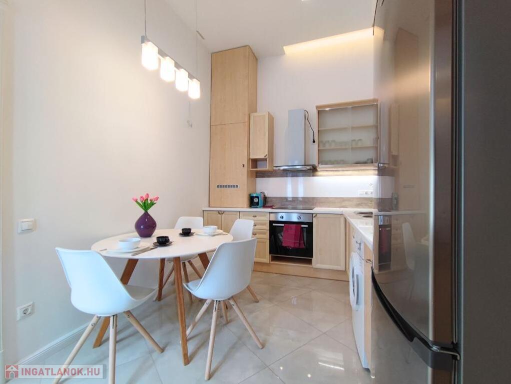 Exclusive, 66 sqm luxury apartment for long-term rent in the historic city center of Budapest, on Kecskeméti Street! In the heart of the historic city center of Budapest, a few steps from the Danube bank, Váci Street and numerous excellent restaurants, shops and cultural venues, we offer for rent an exceptionally bright, spacious, 66 square meter, renovated and furnished apartment to a high standard. In an elegant environment, on the 4th floor of a historic, continuously maintained building with an elevator, this apartment with a living room, bedroom and separate kitchen is located. The central living space is the elegant living room, overlooking the inner courtyard of the house, which is ideal for working from home or even as a guest room. The modern, fully mechanized kitchen is equipped with everything, the round table provides a comfortable place for meals and friendly conversations. The bedroom overlooking the quiet courtyard opens completely separately, with a built-in wardrobe. The stylish bathroom has a shower and toilet, and the window. The home's warmth and hot water service are provided by modern central heating. The area also has excellent transport links (M3, M4 metro, trams, buses all a few minutes away). A perfect choice for those who want to live an elegant, calm, yet city-center life in one of the most beautiful streets of Budapest, where you can always feel like a tourist! Rental fee: 990 EUR / month + 2 months deposit Minimum rental period: 1 year Available to move in immediately! View it in person and become a resident of this exceptional home! For inquiries: +36 70 384 5302