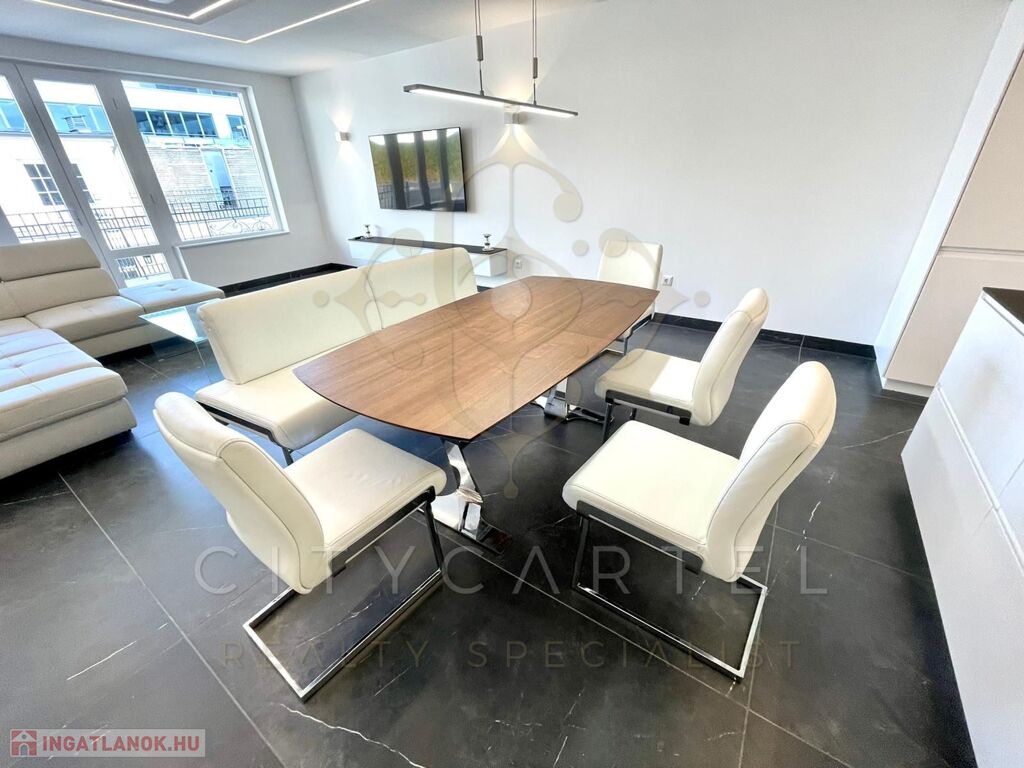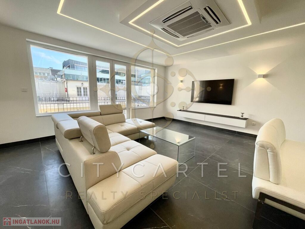 Budapest V. kerületében, a Széchenyi tér közvetlen közelében, exkluzív apartmanházban kiadó egy belső kétszintes 116 nm-es, 4. emeleti, teraszos, klimatizált luxuslakás.