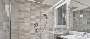 A fürdőszoba épített zuhanyzós, a vízmelegítő egy szekrénybe lett eljejtve.
