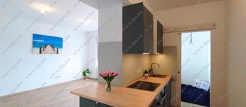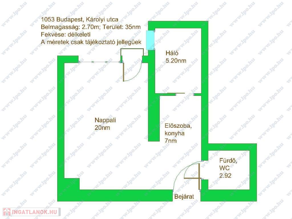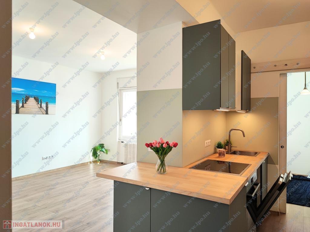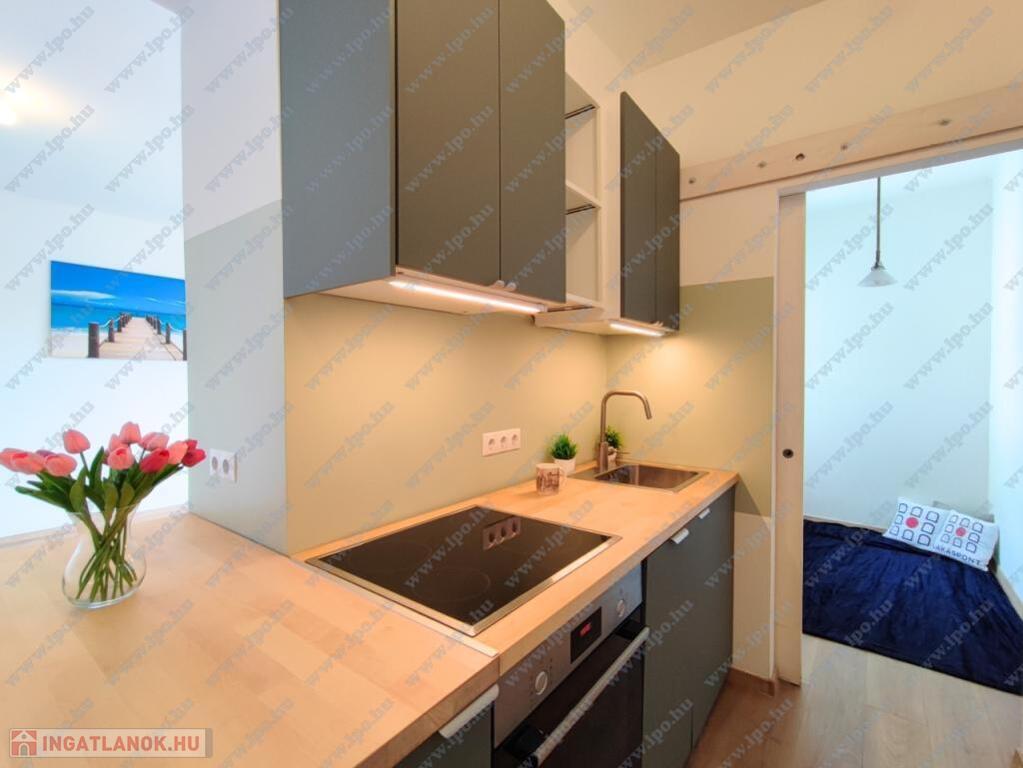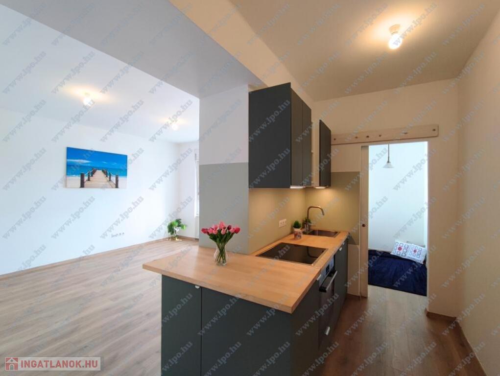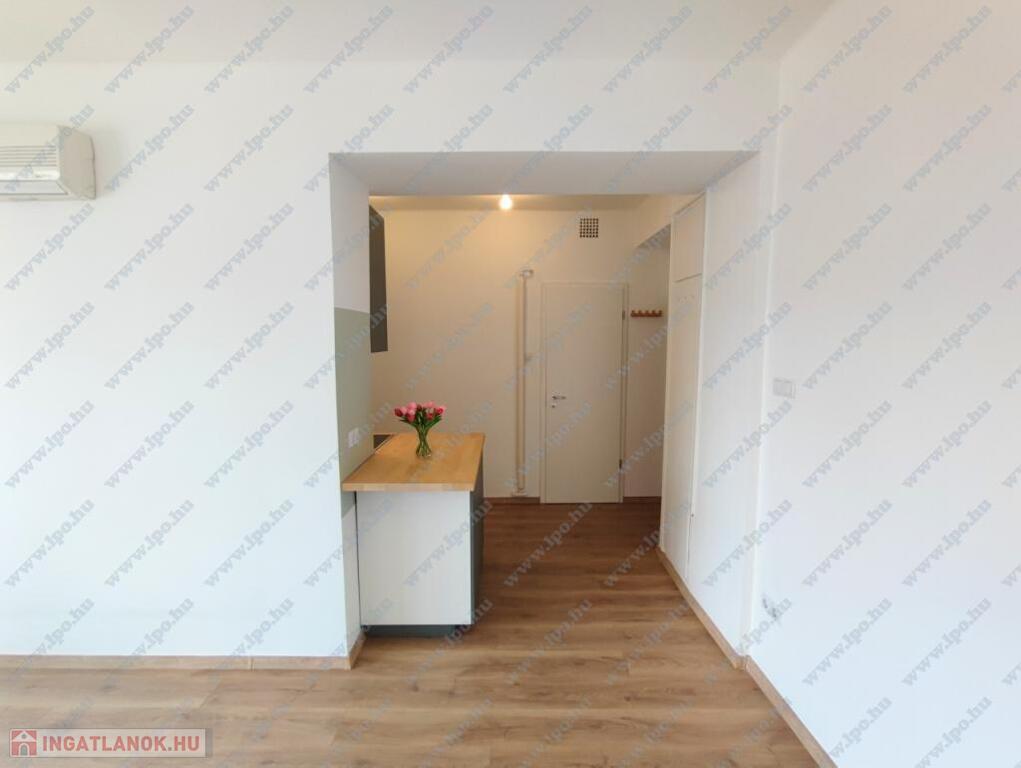 KIADÓ Budapest belvárosában az V. Kecskeméti utcánál, csendes mellékutcában, felújított liftes házban legfelső, 6. emeleti (felette padlás van) 35nm-es felújított, légkondicionált 1 nappali 1 hálós, bútorozatlan, IGÉNY ESETÉN BÚTOROZOTTAN -gépesített, franciaerkélyes lakás. Jelenleg bérlő lakik a lakásban, aki június 7-én költözik ki. A három évvel ezelőtti felújítás során minden vezeték cseréje megtörtént és új bútorok kerültek beépítésre. Konyhában villanytűzhely sütővel, elszívó és mosogatógép lett beszerelve, a hálóban beépített gardrób található, ezenkívül kb 4 nm-es tároló is tartozik a lakáshoz. Tökéletes a lokáció, az ingatlan a Károlyi utcában van, ablakai a Károlyi-kert felé és a Petőfi Irodalmi Múzeumra néznek. Nyugodt élettér, ugyanakkor az Egyetemek közelsége teszik vonzóvá, a Duna part, a híres Fővám téri vásárcsarnok, az Egyetem tér, a Váci utca nyüzsgő, élettel teli forgataga pár perc sétával elérhető. A környék infrastruktúrája kitűnő, mindenhol éttermek, kávézók , bevásárlási lehetőségek. A közlekedés Pest és Buda irányába is kiváló, a Kálvin téren a 3-as, 4-es Metró, a 47, 49-es villamos és számos buszjárat található. Alacsony rezsivel fenntartható, a házközponti fűtés díja, a vízdíj és a közös költség mindössze 21.000Ft./hó, ezen felül csak a villany fizetendő mérés és fogyasztás alapján. Megtekintés rugalmas.