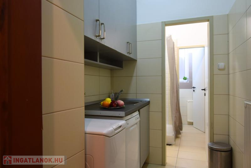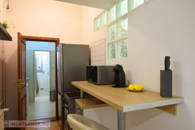 Kiadó Budapest, VI. kerület Paulay Ede utcában (a Deák tér és az Andrássy út közelében), rendezett, liftes ház I.emeletén, igényesen FELÚJÍTOTT, 54 nm-es, 2+1 szobás, galériás (15,5 nm-es) bútorozott, gépesített, KLÍMÁS, cirkófűtéses, lakás.