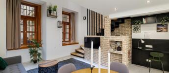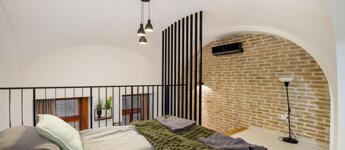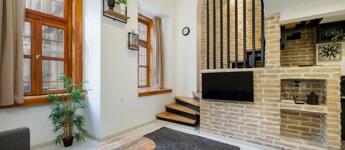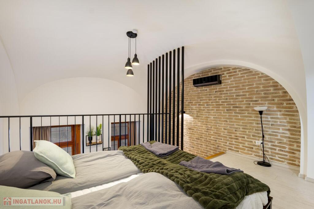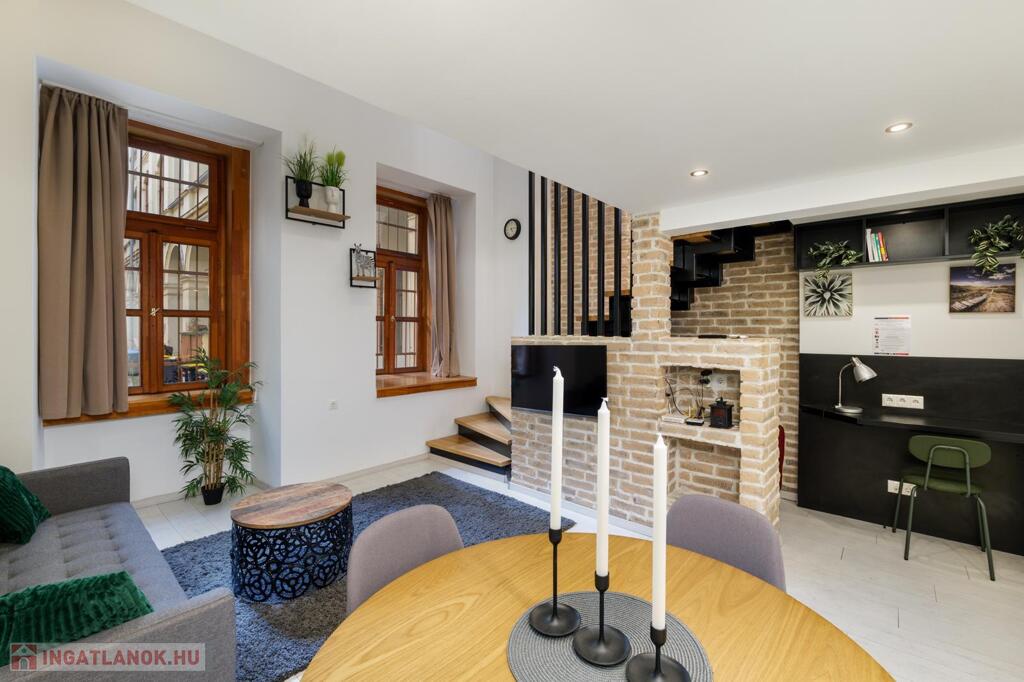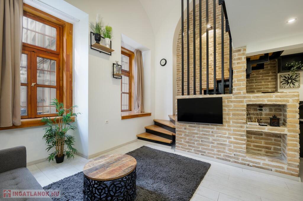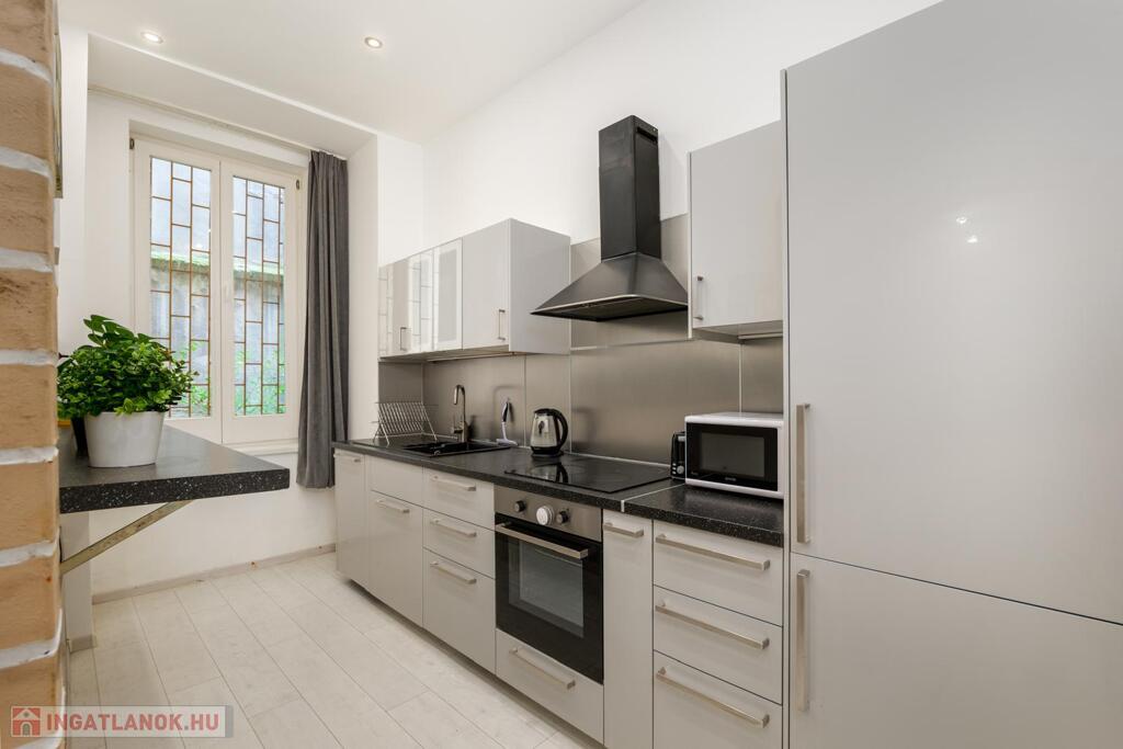 Kiadó a VI. kerületben a Liszt Ferenc téren egy földszinti, 50 m2-es, 1+1 félszobás, galériás nagyon elegáns ingatlan.