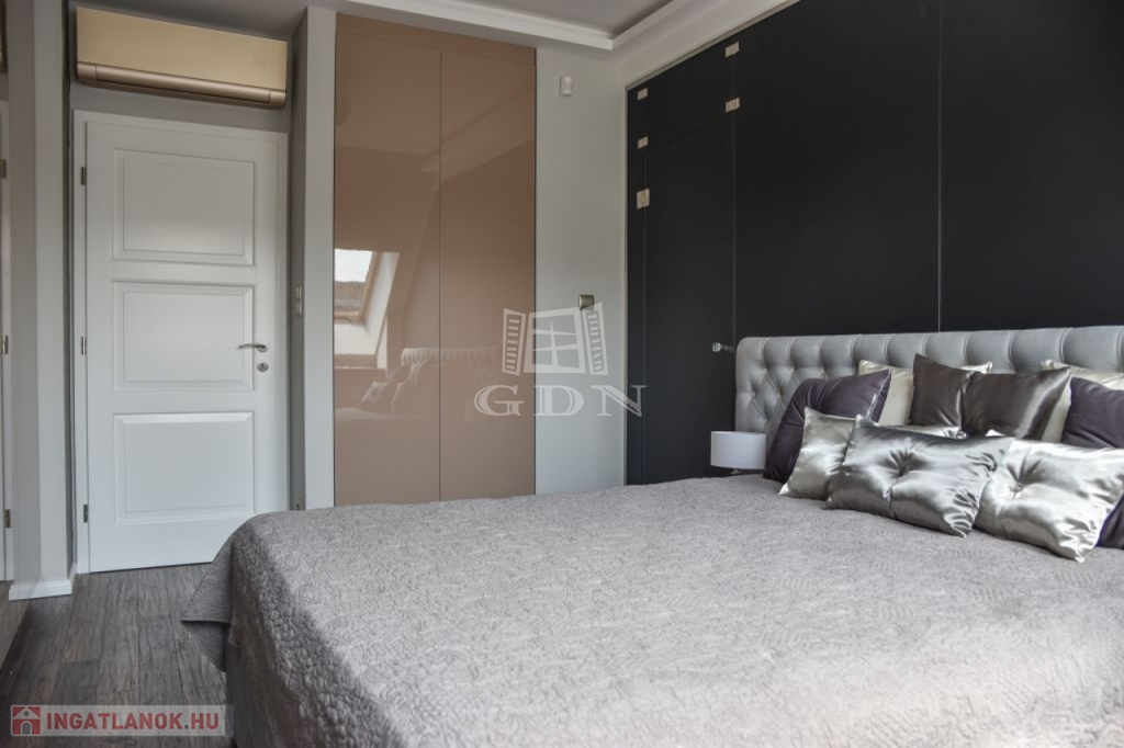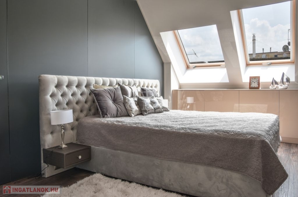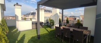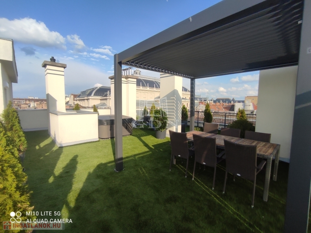 Budapest Belvárosában, az Operánál kiadó egy egyedi kivitelezésű, exkluzív penthouse lakás, teljeskörűen felújított, liftes ház legfelső szintjén, örökpanorámás, privát tetőterasszal.