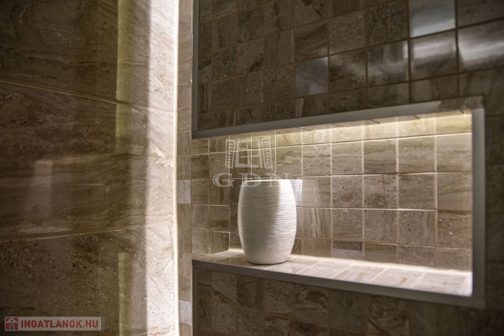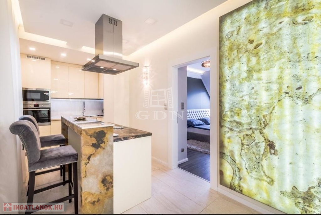 A lakótérben bruttó 92m2-en, nappali, két hálószoba, egy magas minőségben felszerelt, részben szeparált konyha és két fürdőszoba található. A berendezés tárgyát képezik az egyedi készítésű design bútorok, kristály csillárok. A 77m2-es tetőterasz, szaunával, jakuzzival és lenyűgöző panorámával az Operára, Bazilikára, Citadellára, tökéletes helyszín vendégek fogadásához, pihenéshez, romantikus estékhez. Pár perc sétára megtalálható az Andrássy út, továbbá számos étterem kávézó. Azonnal költözhető.