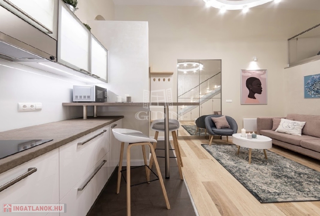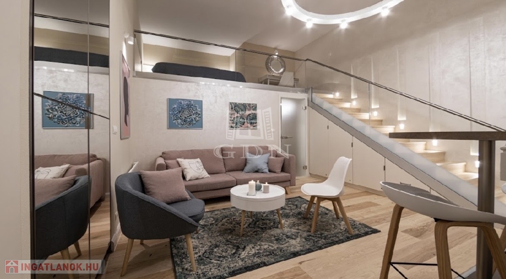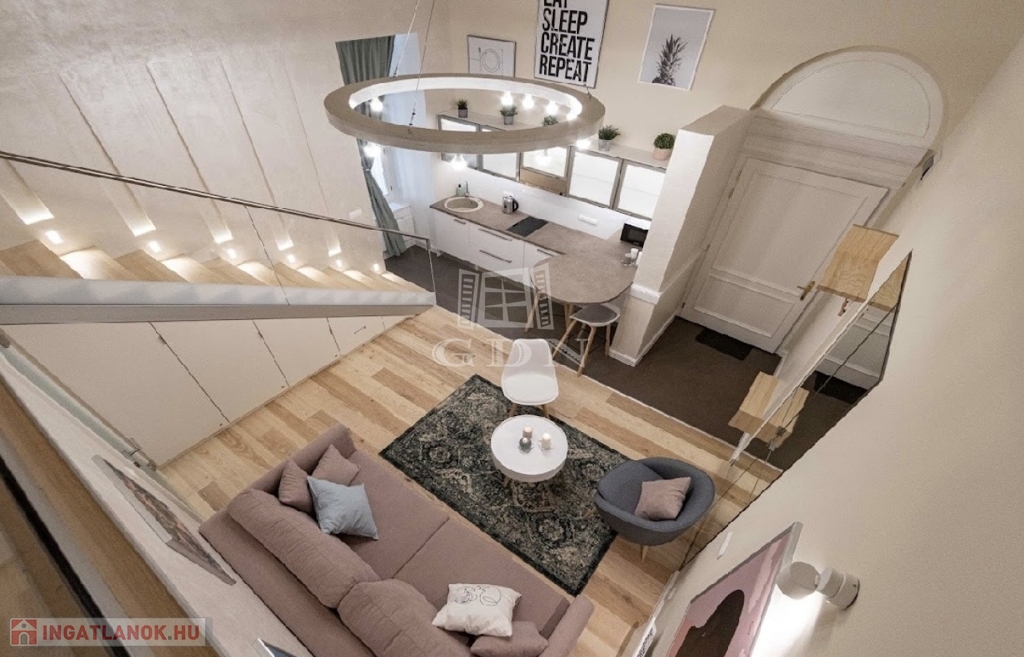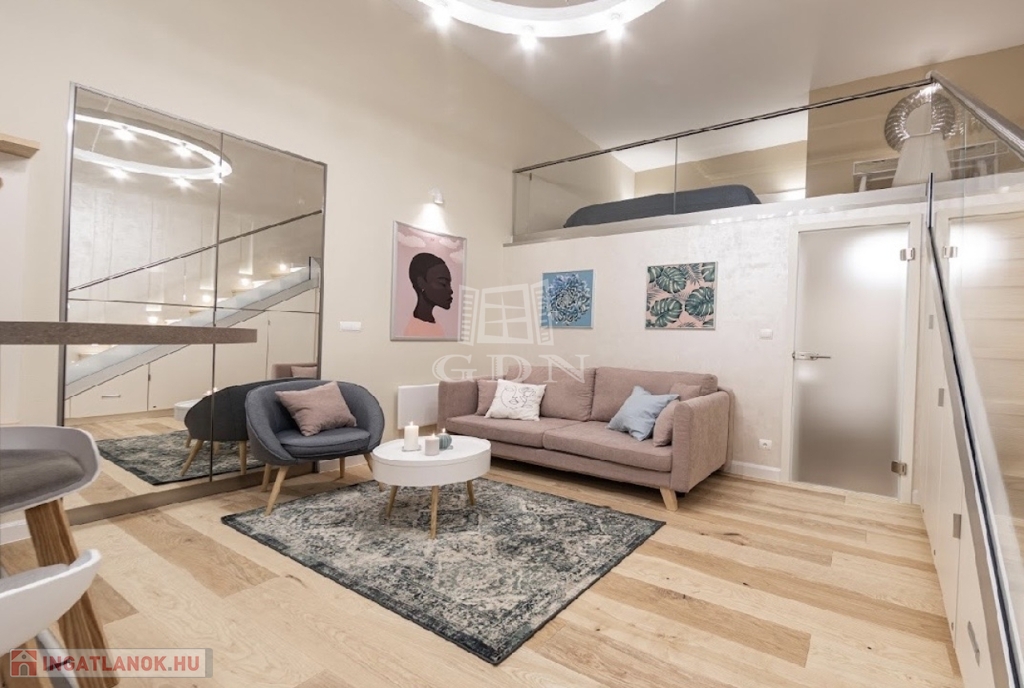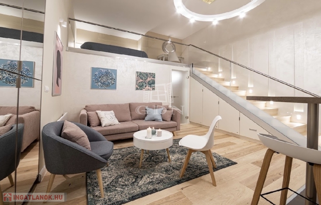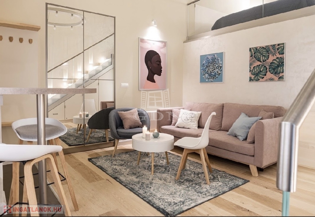 Kiadó az Ó utca központi, mégis csendes részén egy 34 m²-es, belső állógalériás ingatlan, amely lakásként és irodaként egyaránt kiválóan használható.
