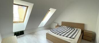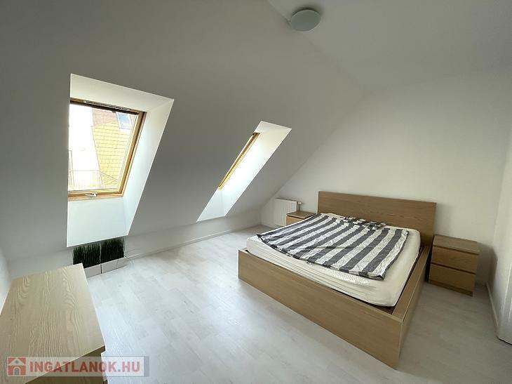 A lakás külön nappalival és hálószobával rendelkezik,a tetőtéri elhelyezkedésnek köszönhetően nagyon világos és napfényes.