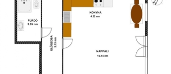 A lakás 1 szobából, konyhából, zuhanyzós fürdőszobából, (két nagy beépített szekrény) áll.