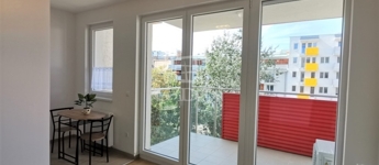 XIII.kerület, Szabolcs utca dinamikusan fejlődő részén, egy liftes, 4. emeleti, 29 nm-es ( 5 nm erkély), 1 szobás, gépesített, új építésű házban kiadó.