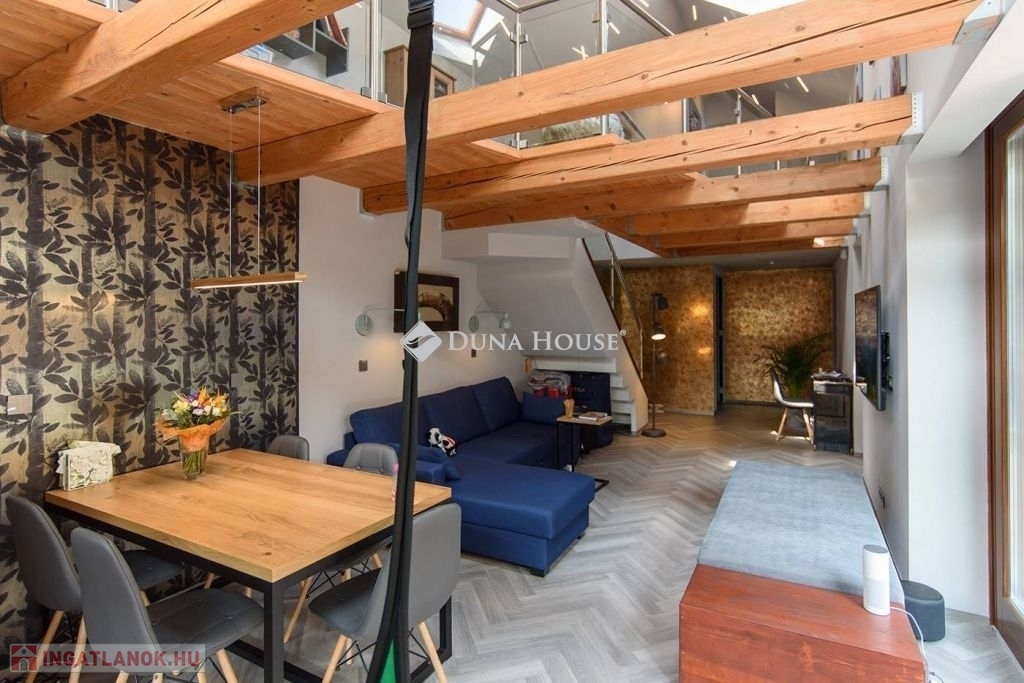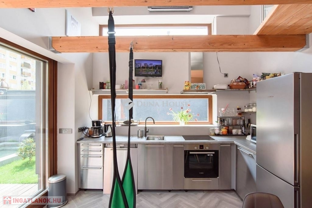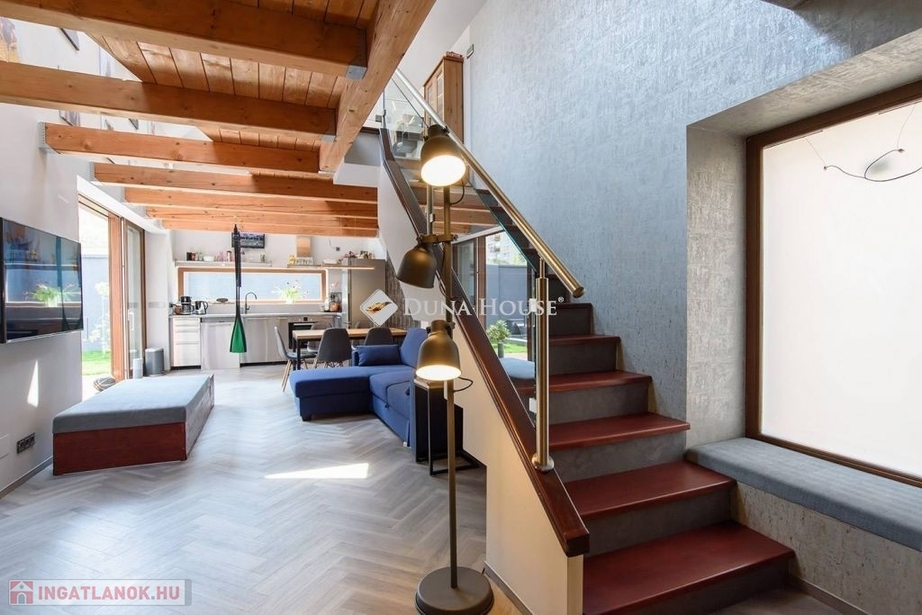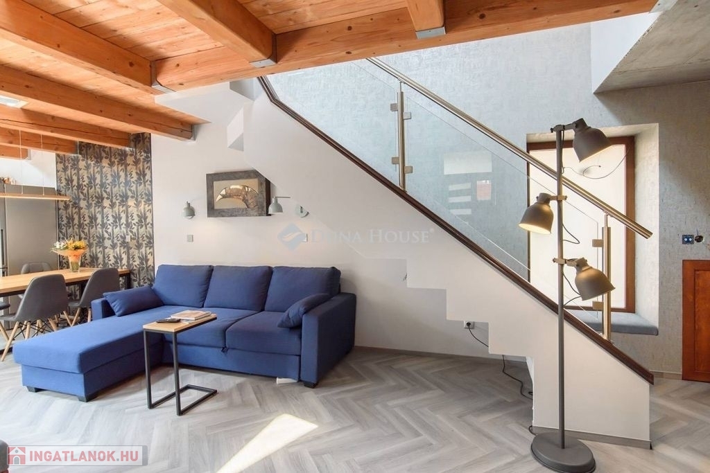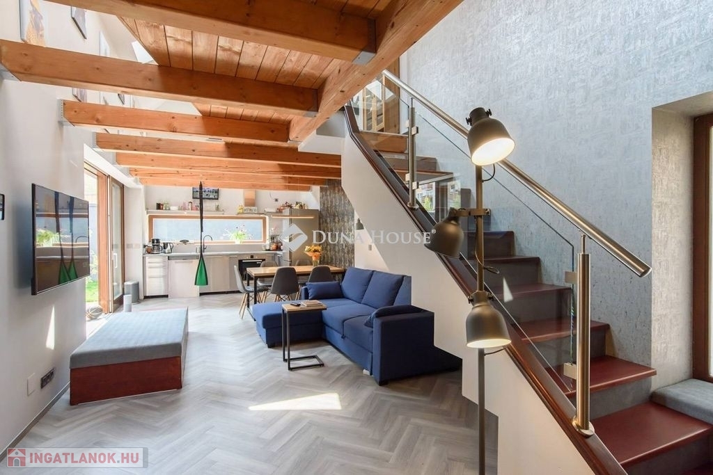 A lakás főbb jellemzői:52 nm alapterület: előszoba, világos amerikai konyhás nappali, kádas és zuhanyzós fürdőszoba, külön WC,32 nm galéria: kényelmes hálószoba és további WC, 20 nm alagsor: egyedileg kialakított, beépített gardrób, bőséges tárolási lehetőségekkel