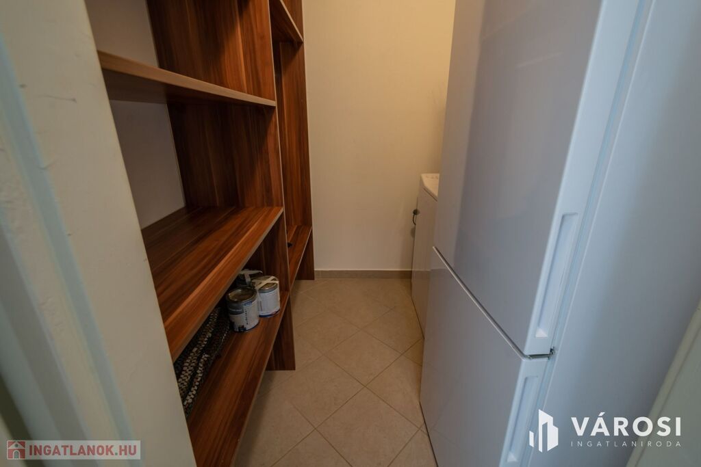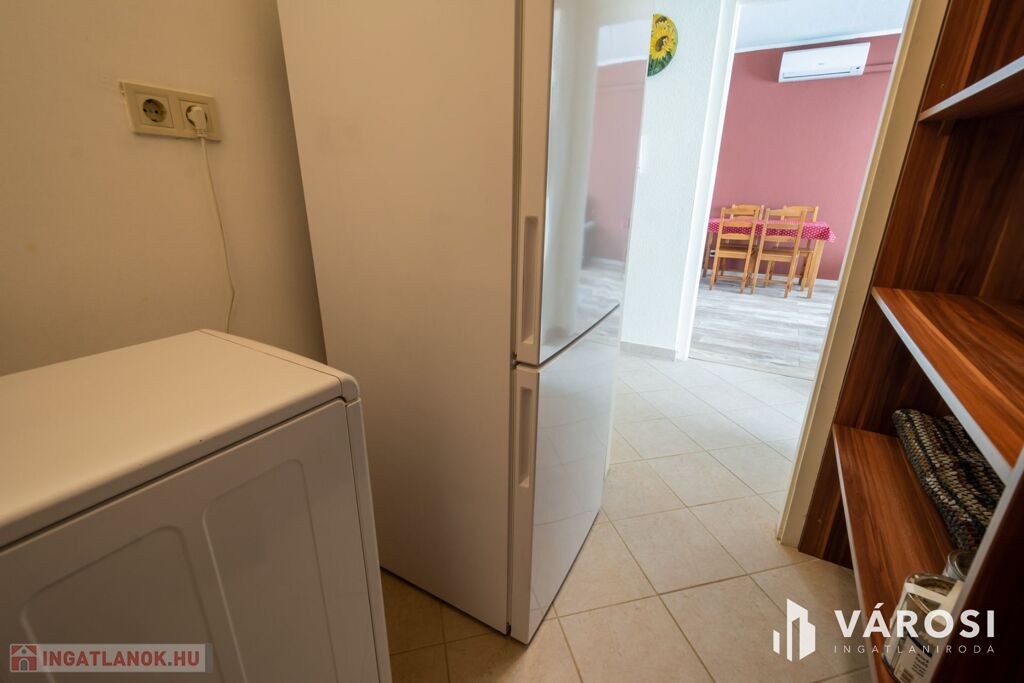 - mosógép és hűtő, a különálló 3 m2-es kamrában található