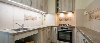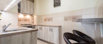 - a konyha bútorozott és gépesített: elektromos sütő és főzőlap, elszívó, 8 terítékes mosogatógép