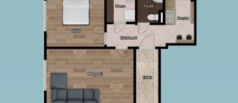 - igényesen bútorozott (ággyá alakítható kanapé, étkező asztal, franciaágy, komódok, szekrények)