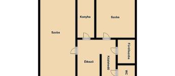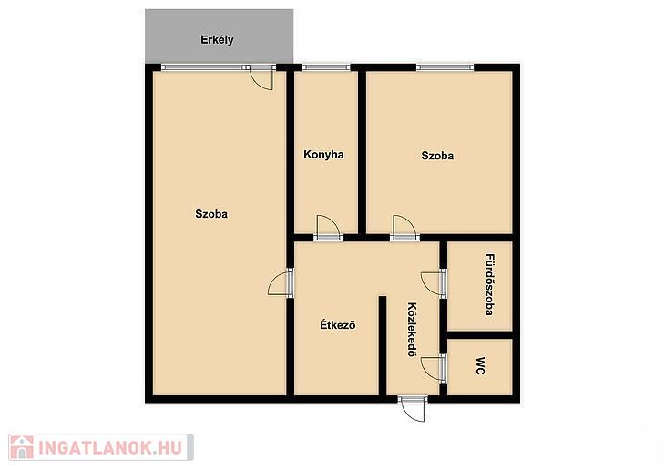 2 szoba, étkező, konyha, kádas fürdőszoba, mellékhelyiség, közlekedő, előszoba, 4 m2-es erkély.
