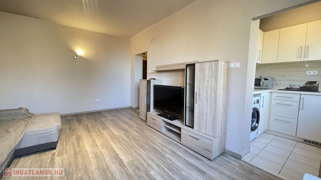 EGY SZOBA, KONYHA GÉPESÍTVE, FÜRDŐ ZUHANYKABINNAL, ELŐSZOBA PLAFONIG ÉRŐ BEÉPÍTETT SZEKRÉNNYEL.
