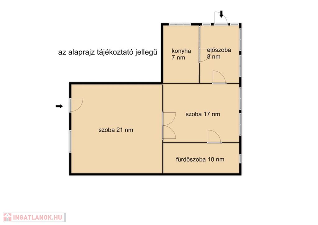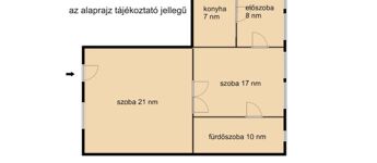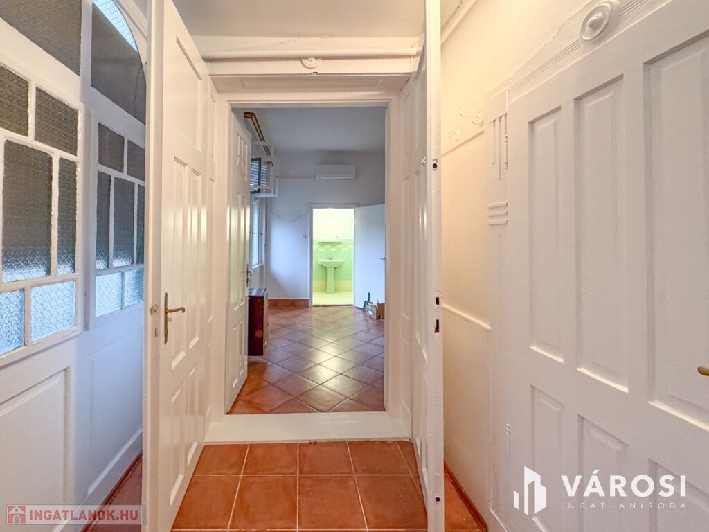 Az ingatlanban két tágas szoba, egy konyha, fürdőszoba és egy tágas előtér található. Különlegessége hogy két bejárattal rendelkezik így akár vállalkozás céljára is használható.