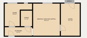 Az ingatlan modern igények szerint került kialakításra: amerikai konyhás nappali + két külön nyíló hálószoba, amely ideális választás igényes bérlők számára.
