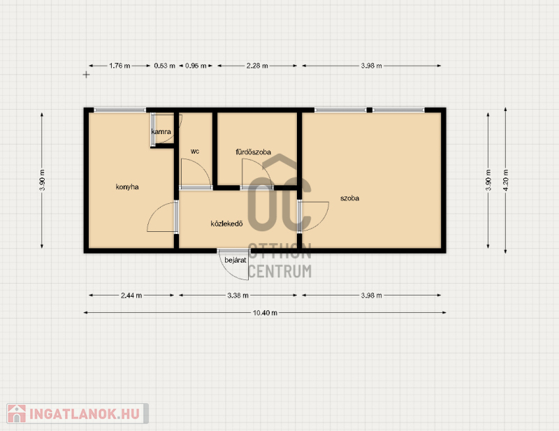 A lakás konyha bútorral berendezett, tágas szobával, konyhával, kamrával, fürdőszobával és külön mellékhelyiséggel rendelkezik. Keleti tájolású!