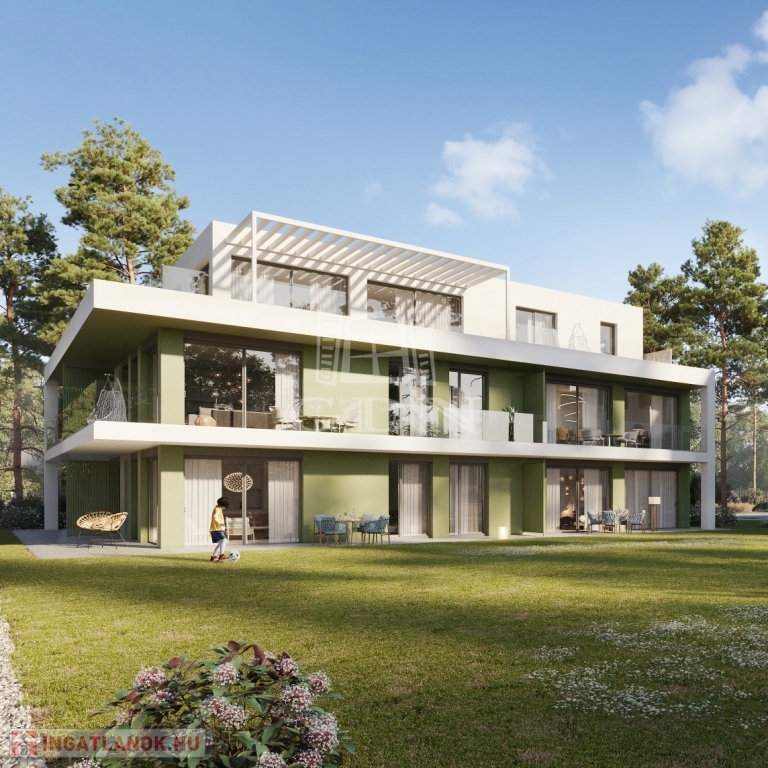 IN BALATONFENYVES, NEWLY BUILT RESIDENTIAL PARK, 80 METERS FROM THE BEACH ! ! ! 1-2-3 room apartments, 4 room penthouse ! ! ! THE APARTMENT is located on the first floor. 54 sqm living space, 11 sqm terrace. Living room with American kitchen, bedroom, hallway/wardrobe, bathroom, toilet. The terrace is accessible from the living room. It is characterized by spacious, bright spaces. BALATONFENYVES: Quiet family resort - This is the slogan of Balatonfenyves. It lies on the south-western shore of Lake Balaton, between Fonyód and Keszthely. A truly calm, quiet, very good-atmosphere settlement, in an ancient tree-lined environment, with cozy streets. Fenyves has not become a crowded resort town, although its huge and comfortable beaches, relaxation areas, and ever-expanding cultural program offer attract guests. On a summer weekend, twenty thousand people visit a settlement with a permanent population of over two thousand, where, thanks to the more than one and a half thousand pine trees, a unique climate welcomes guests. THE RESIDENTIAL PARK: The investment is located in the area between the railway and the waterfront, 80 meters from Lake Balaton, on a quiet plot bordered by old pine trees. The plot area is 3760 sq m. Three identical houses are being built, with 7 apartments each. Huge green landscaped areas between the houses preserve the atmosphere of the area. Car parking lots with dedicated parking spaces will be created on both sides of the plot. Storage spaces have been created at the bottom of the houses, which can be purchased separately (2.5 million HUF). TECHNICAL DATA: The external MASONRY is made of 44 cm Porotherm climate, fired ceramic masonry blocks, and insulation is also added. The apartment dividing walls are made of Porotherm 30 AKU Z soundproof bricks. DOORS 3-layer, sound and heat insulating, colored on the outside, with a built-in external shading system. The property has a water connection, sewage and gas connection. HOT WATER is provided by an Ariston VelisEvo100 EU, 100-liter water heater per apartment. HEATING is heat pump ceiling heating and COOLING. There will be floor heating in the bathroom and toilet, and towel radiators will be installed in the bathrooms. You can choose from a variety of flooring and kitchen furniture designs. INFRASTRUCTURE: Free beaches can be reached on foot from two streets. The Big Beach is also within walking distance. Slides, rentals, and restaurants await holidaymakers on the Big Beach. Shopping is 150m away. The train station and the center of Balatonfenyves are a few minutes' walk away. CONSTRUCTION HAS BEGUN, ALL 3 BUILDINGS ARE BEING BUILT AT THE SAME TIME. EXPECTED COMPLETION OF THE ENTIRE PROJECT IS APRIL 2023. APARTMENTS OF ALL SIZES! 1-2-3-room or 4-room penthouses. From 57-186 M HUF. 31, 51, 54, 67, 73, 90 NM, plus terrace or garden connection The prices given include 27% VAT! Buy a holiday home for your company for 64,900,000 HUF net. FOR DETAILED INFORMATION, CONTACT US WITH CONFIDENCE! IF YOU DO NOT HAVE THE FULL PURCHASE PRICE, we will help you find the best solution! Our BANK-INDEPENDENT credit center will compare the offers of all available banks and credit institutions for you, free of charge. All you have to do is talk to our staff, who will invite the banks to compete based on the information they have heard, so that you can get the best long-term plan. You can ultimately choose the winner from the best offers. Our staff, with many years of professional experience, are waiting for you, even after normal working hours, by prior arrangement.