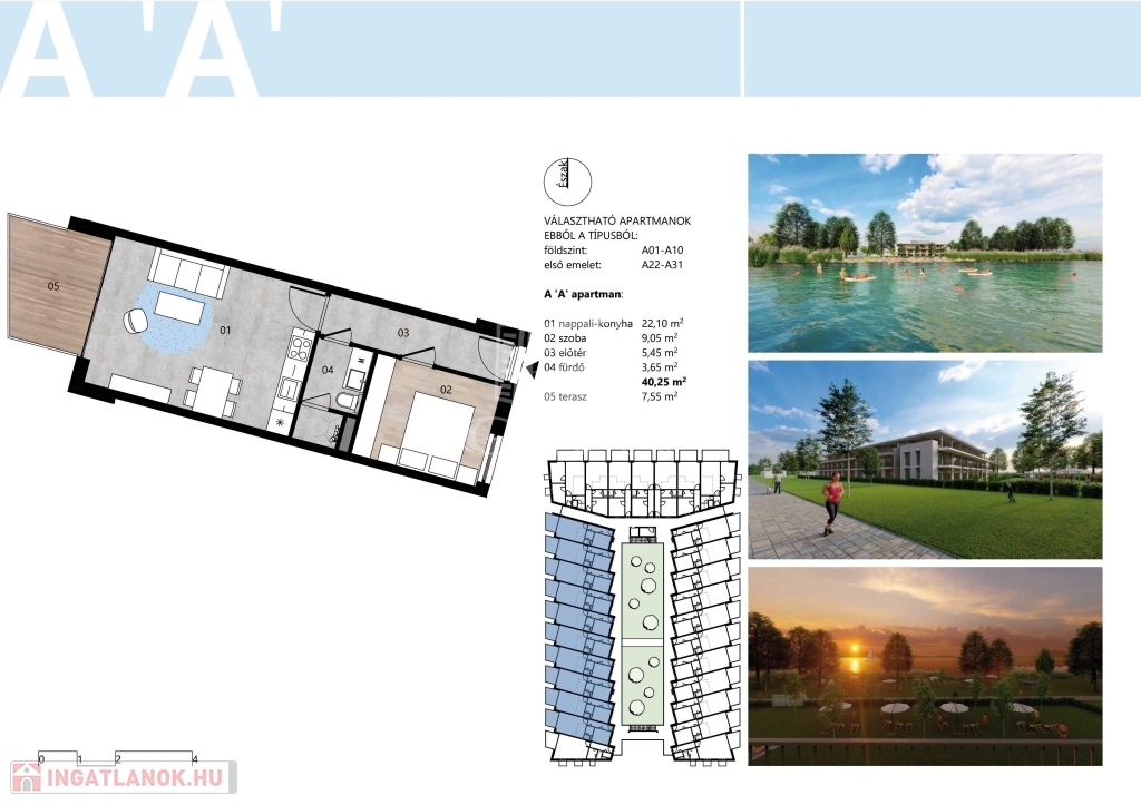 Description of the settlement: The settlement, located opposite Badacsony and the Keszthely Bay, is a popular holiday resort, although this character only developed at the beginning of the 20th century, before that it belonged to the religious commission estates of the Festetics. The village merged in 1927 from two former settlements: the former Hullám settlement and the Mária settlement, the latter named after Mária Andrássy, the wife of Count Széchenyi. Nowadays, it is almost integrated with the neighboring Balatonkeresztúr. There is a paid beach and seven free beaches to choose from, and many hotels, guesthouses and holiday homes are waiting for those who want to vacation. It is an excellent fishing spot for anglers, there is also the possibility of shore and boat fishing. Investment: Flats pcs. number: 71 pcs. Number of floors: 3 Elevator: Schindler brand 6-passenger lift Heating/Air conditioning: Infra floor heating for each apartment that can be controlled via Wifi, and air conditioning for each apartment with a Midea brand heat pump system that can also be controlled from the Internet Parking: Surface parking. Salary: Sectional, linked to degree of preparation. Lawyer's fee: Purchase price 0.6% Technical content (will be sent on request). Delivery: fourth quarter of 2025. The purchase price includes high-level heating-ready condition, the plot share and VAT! It can even be purchased with a turnkey finish! For the flats NOW, surface parking SUMMER SALE August 31. A02 flat For further questions and viewings, please call the given mobile number.