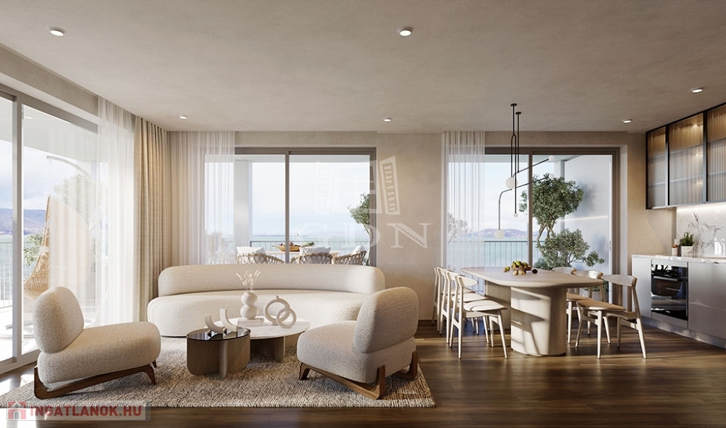 Balatonmáriafürdő központi részén, körbekerített parkosított telken, saját partszakasszal rendelkező lakópark 3.ÜTEM, első emeleti,