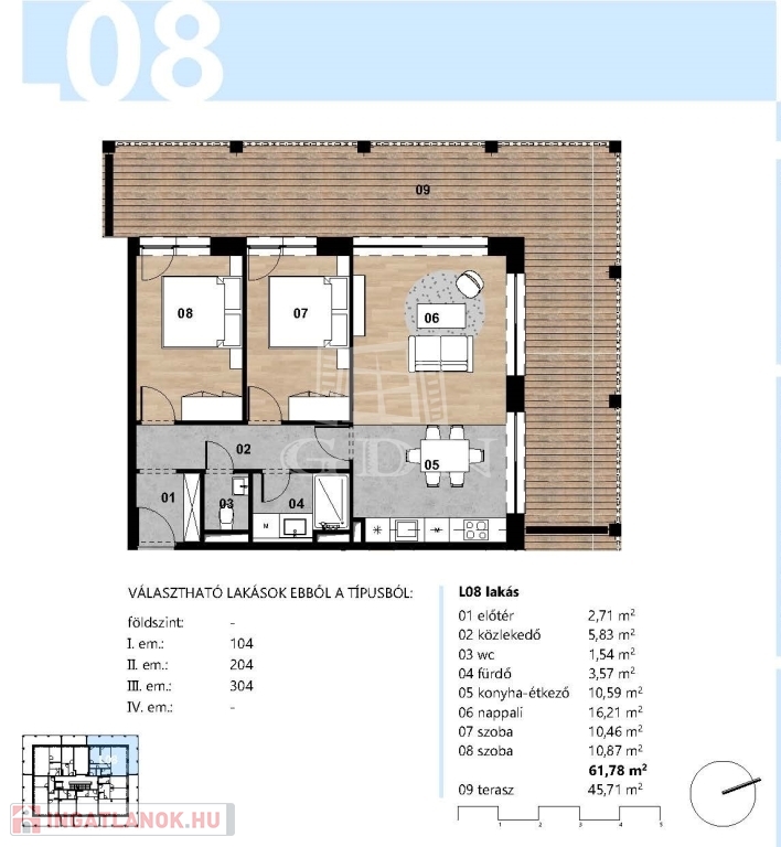 62 nm-es, 3 szobás, 47 nm-es terasszal, elismert szakmai háttérrel rendelkező tervezőiroda által megálmodott lakás, fűtéskész, 2026-ban történő átadással eladó.