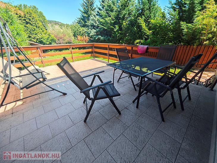 A zárt udvarban kettő autó számára térkövezett autóbeállási lehetőség biztosított automata kapun keresztül.