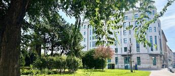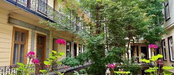 Az ingatlan csendes, zöld és rendezett udvarra néz, ami nyugodt, kellemes környezetet biztosít.