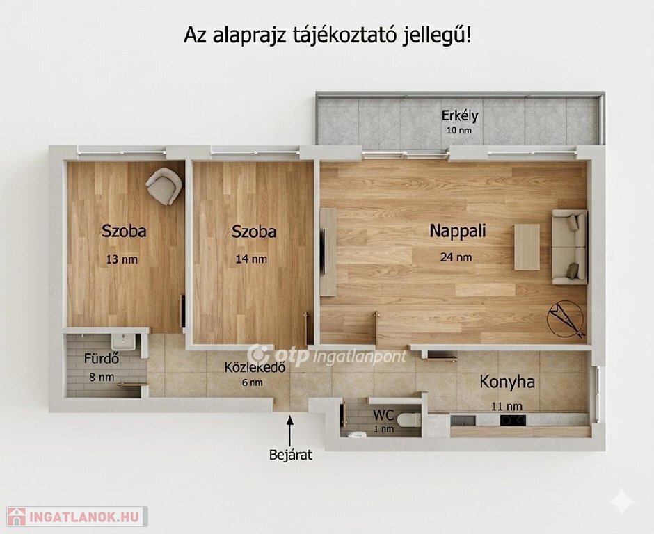 - Emelet: magasföldszint (valóságban olyan, mintha az 1. emeleten lenne)