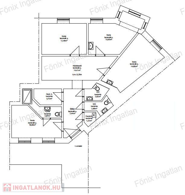 - 4 különálló, világos kezelőhelyiség (az egyik saját fürdőszobával)