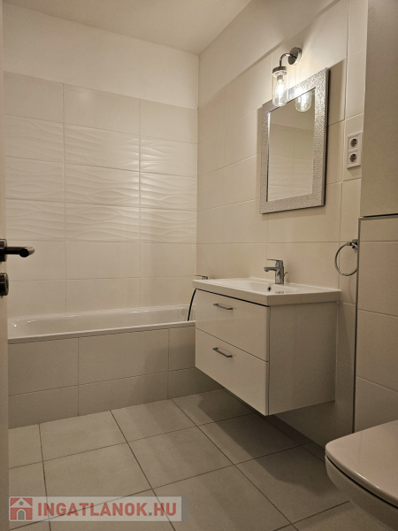 Mindkét hálószoba csendes, világos, barátságos. A lakásban két fürdőszoba van, a nagyobbik káddal és wc-vel, a kisebbik zuhanyzóval és wc-vel lett kialakítva, Háztartási helyiség, riasztó, videós kaputelefon az extra felszereltségek közt.