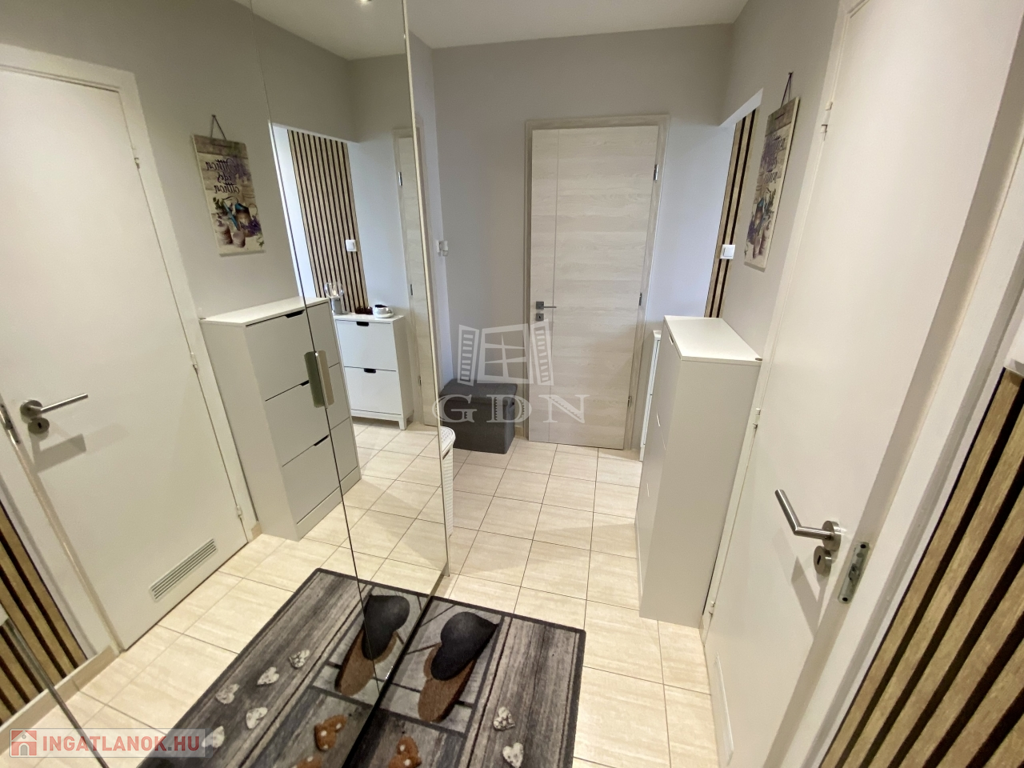 Az ingatlan a 7. emeletről – nyugati tájolással – pompás kilátást kínál a környező hegyekre és a budai panorámára.
