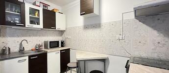 A konyha új bútorzatot és burkolatot kapott, tágas a falak eltávolítása miatt.