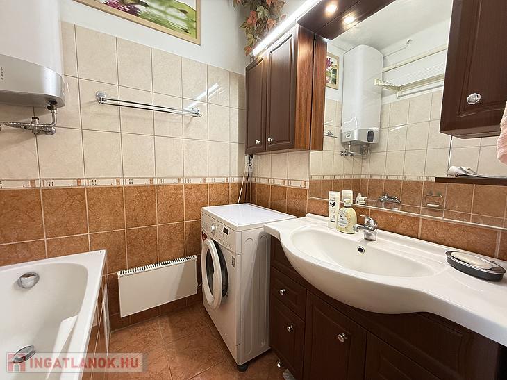 A fürdőszobában kád van, a mosógép ki-és beállása ebben a helyiségben került kialakításra.