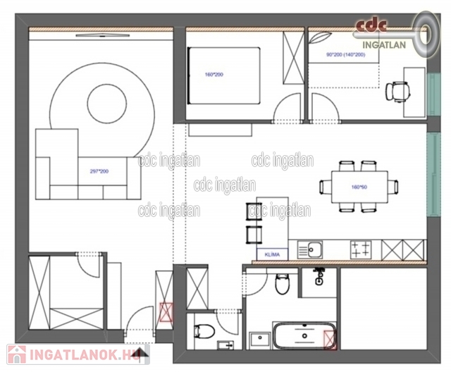 Főbb jellemzők: 1 tágas nappali–étkező–konyha, 2 kényelmes hálószoba + külön gardróbszoba, fürdőszoba WC-vel + külön WC, beépített, vadonatúj, felsőkategóriás konyhabútor és gépek.