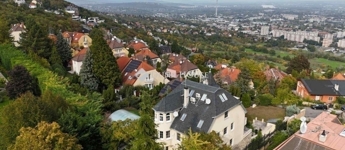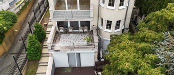 32 m²-es napfényes terasz gyönyörű zöld kertkapcsolattal és városi panorámával