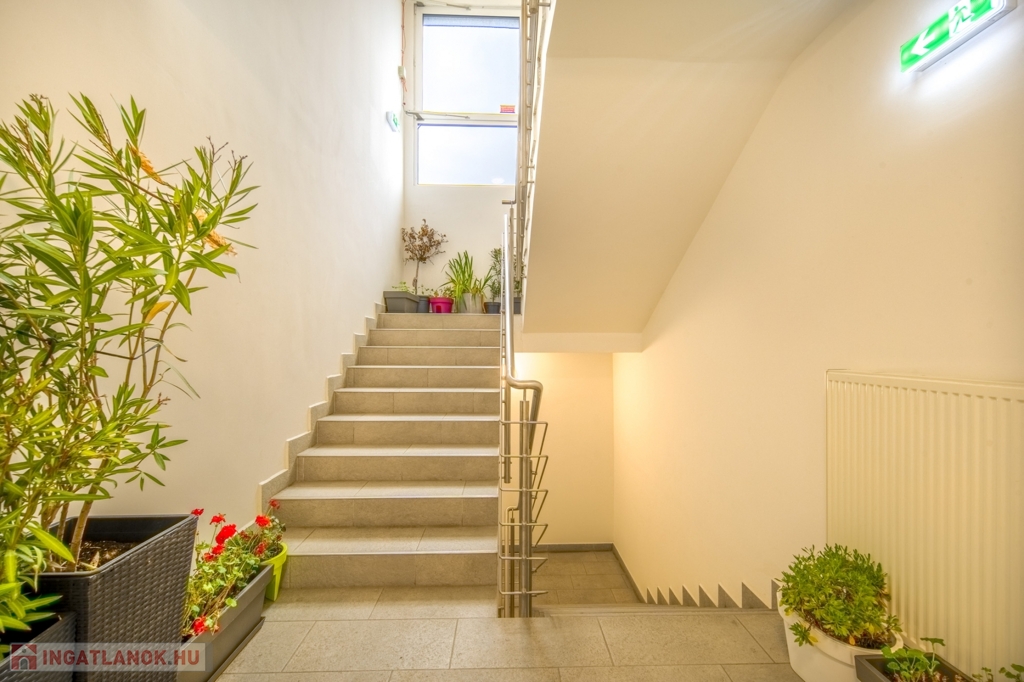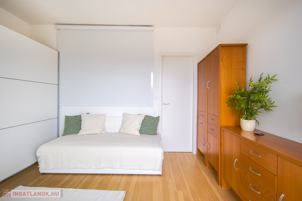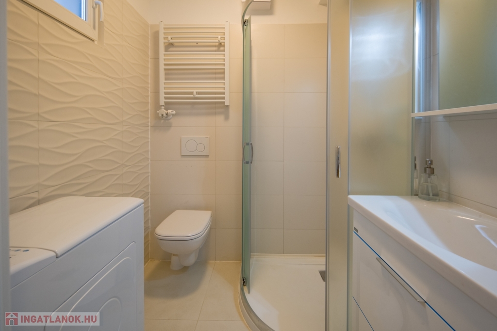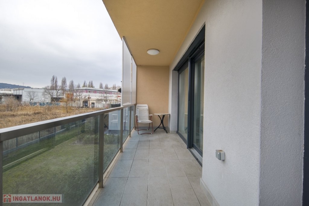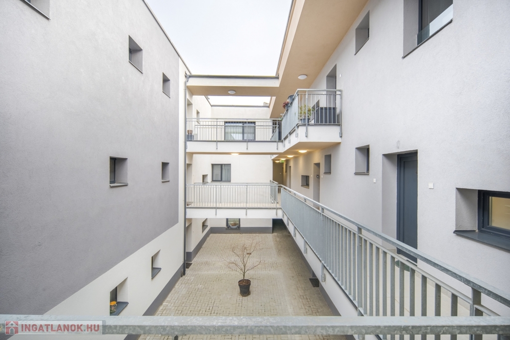 2022-ben épült, 15 lakásos társasházban, a Csillaghegy Residenceben 50 m2 alapterületű, plusz 9,5 m2-es terasszal rendelkező, nyugati fekvésű, nappali 2 hálós, 2 fürdőszobás, újszerű állapotban lévő lakás eladó. Minden rezsi egyedi mérésű: a hőszivattyús rendszerrel működő mennyezeti hűtés-fűtés és a padlófűtés hőmennyiségmérővel mért, gáz nincs az épületekben. A konyha mosogatógéppel és hűtővel is felszerelt, a két fürdőszoba zuhanyzós és WC-s.