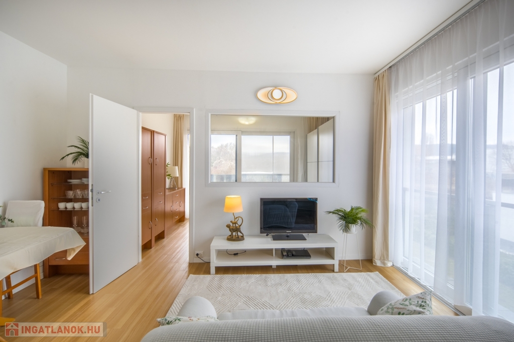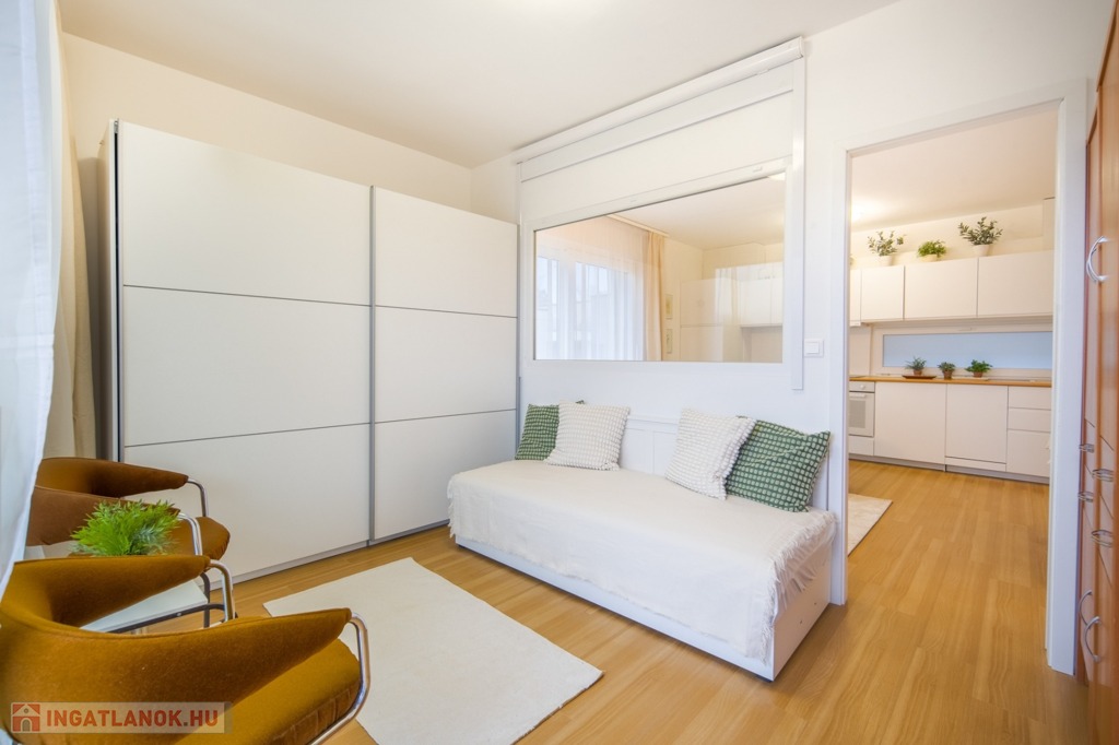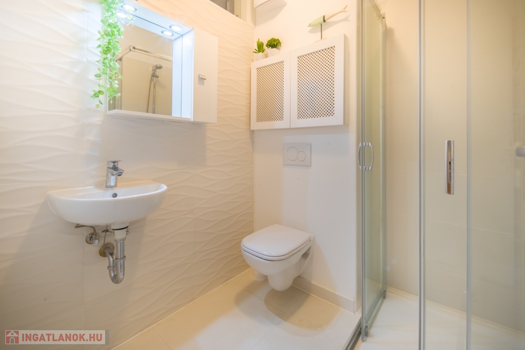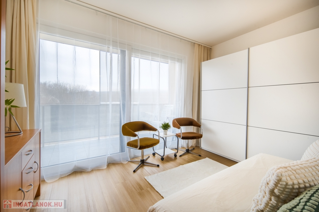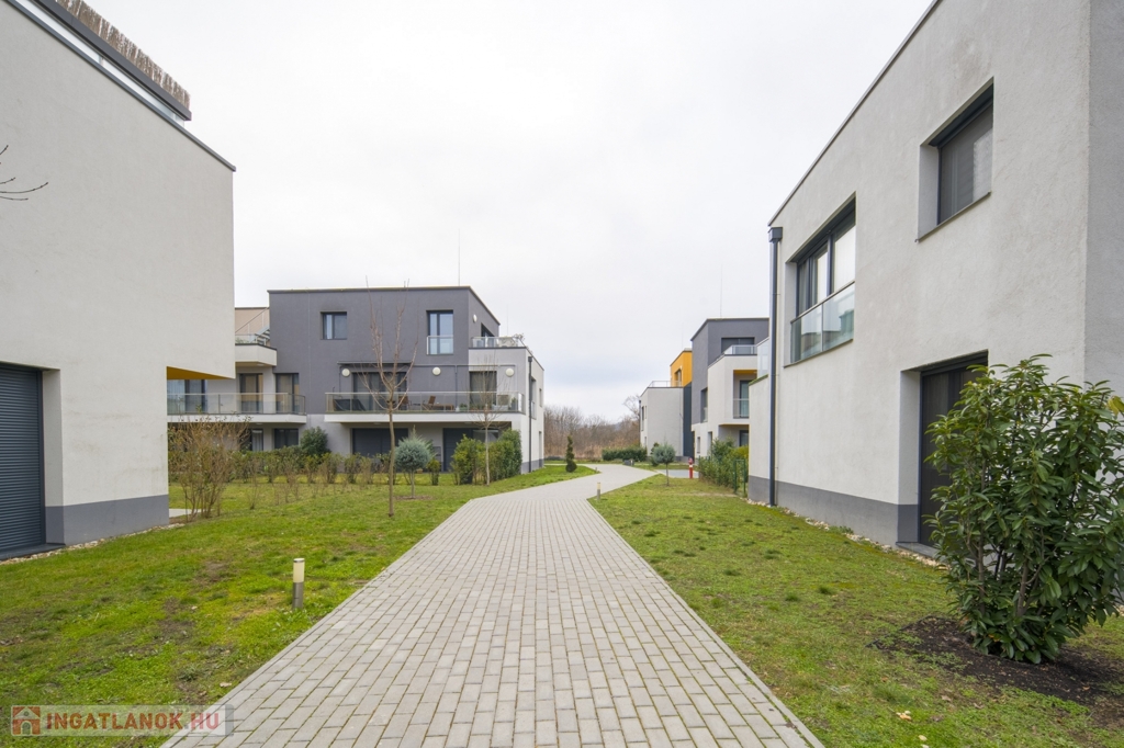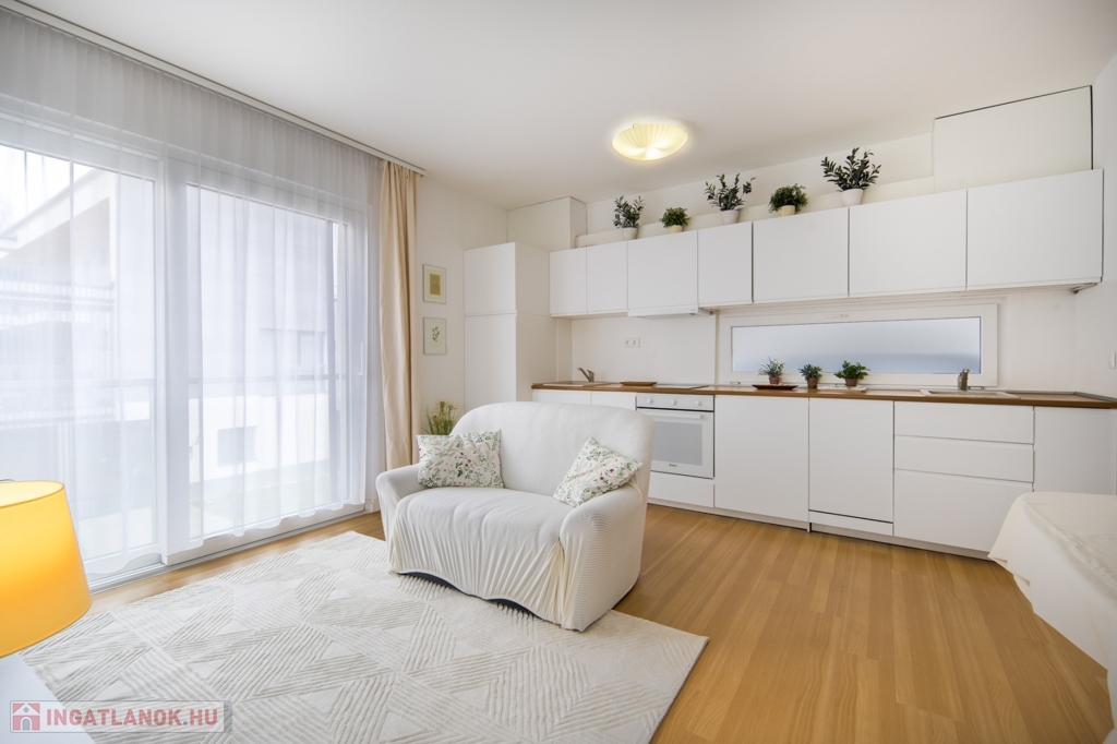 2022-ben épült, 15 lakásos társasházban, a Csillaghegy Residenceben 50 m2 alapterületű, plusz 9,5 m2-es terasszal rendelkező, nyugati fekvésű, nappali 2 hálós, 2 fürdőszobás, újszerű állapotban lévő lakás eladó. Minden rezsi egyedi mérésű: a hőszivattyús rendszerrel működő mennyezeti hűtés-fűtés és a padlófűtés hőmennyiségmérővel mért, gáz nincs az épületekben. A konyha mosogatógéppel és hűtővel is felszerelt, a két fürdőszoba zuhanyzós és WC-s.