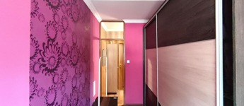 Friss festés, falak dísztapétával kiegészítve.