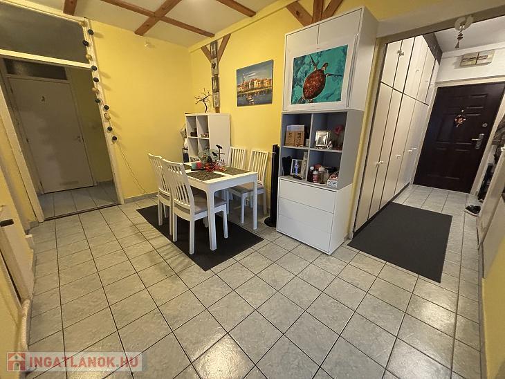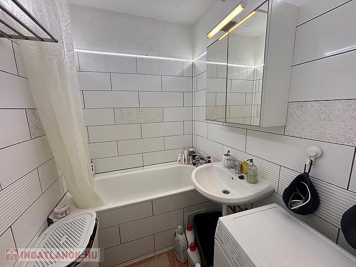 A lakás jó állapotú, a nyílászárók fa típusú thermo üvegesek, redőnyösek, a szobák laminált parkettásak, a többi helyiség járólapos. A konyhabútort kicserélték, a fürdőszoba 2021-ben új burkolatot kapott. A beépített bútorzat a vételár részét képezik.