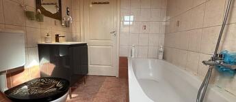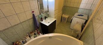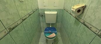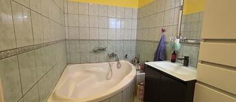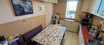 Az alsó szint 65nm-es 2szobás, közepes-jó állapotú, a szobák fa perkettásak, a többi helyiség járólapos. A villanyvezetékeket a konyhában és a fürdőszobában áthúzták, a fürdőszobát megnagyobbították, a konyhabútort és a fürdő burkolatokat kicserélték. (3éve) az ablakokat műanyag thermo üvegesre (szúnyoghálós) cserélték, a radiátorokkal együtt. A bejárati ajtó, több ponton záródó, biztonsági.