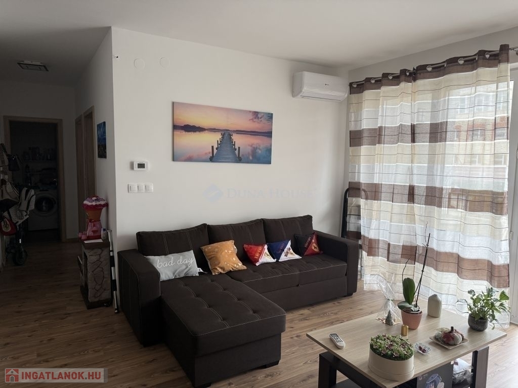 Újszerű, erkélyes lakás eladó a IV. kerületben 2 háló + nappali, alacsony rezsiBudapest IV. kerületében, rendezett, 2024-ben épült társasház 1. emeletén eladó egy 65 m²-es, 2 hálószobás, amerikai konyhás nappalis, erkélyes lakás.Lakás elosztásaAz ingatlan praktikus kialakítású:ElőtérKülön WC és fürdőszoba2 külön nyíló hálószobaAmerikai konyhás, tágas nappaliErkély keleti tájolássalAz erkély ideális helyszín reggeli kávézáshoz, délelőtt napfényes, délután pedig kellemesen árnyékos.Műszaki tartalom és felszereltségPadlófűtés az egész lakásban (radiátorok nélkül)Elektromos redőny minden ablakonKlímaberendezésLaminált parketta a szobákban, járólap a vizes helyiségekbenKiváló szigetelés, alacsony fenntartási költségekEgyedi mérőórák (áram H tarifa is, víz, gáz)ÉpületA társasház 2024-ben épült, lifttel felszerelt, rendezett és tiszta.Az udvarban zöldterület került kialakításra, valamint a földszinten közös tároló áll rendelkezésre biciklik és babakocsik számára.Parkolás és tárolásZárt autóbeálló a ház aljában: 6.500.000 Ft (opcionális)3,52 m²-es tároló: 4.000.000 Ft (opcionális)ElhelyezkedésA környék infrastruktúrája kiváló: bevásárlási lehetőségek, iskolák, éttermek és buszmegállók a közelben.A Újpest központ tömegközlekedéssel kb. 10 perc alatt elérhető.EgyébPer- és tehermentesOpcionálisan bútorozottan is megvásárolhatóBefektetésnek is ideális, könnyen kiadhatóEz a modern, alacsony fenntartású lakás ideális választás pároknak, családoknak vagy befektetőknek egyaránt.