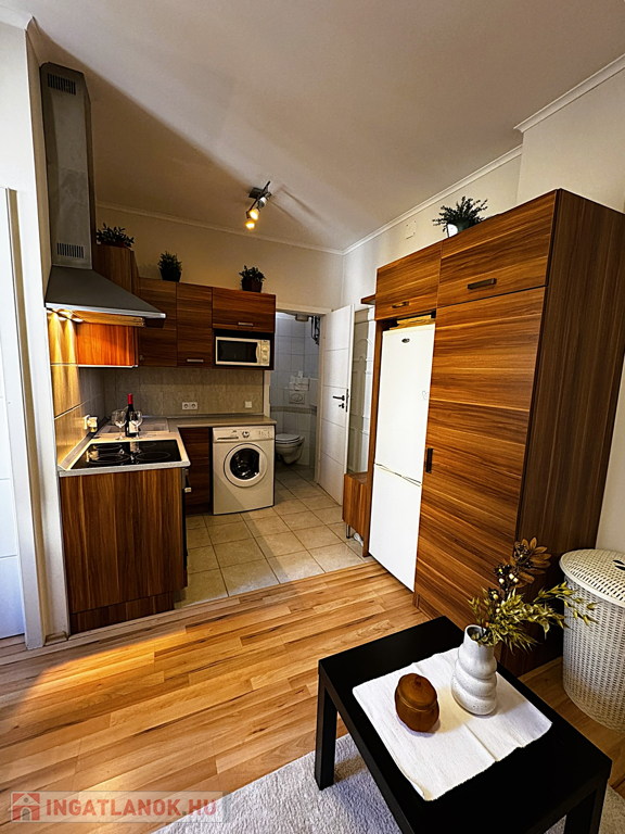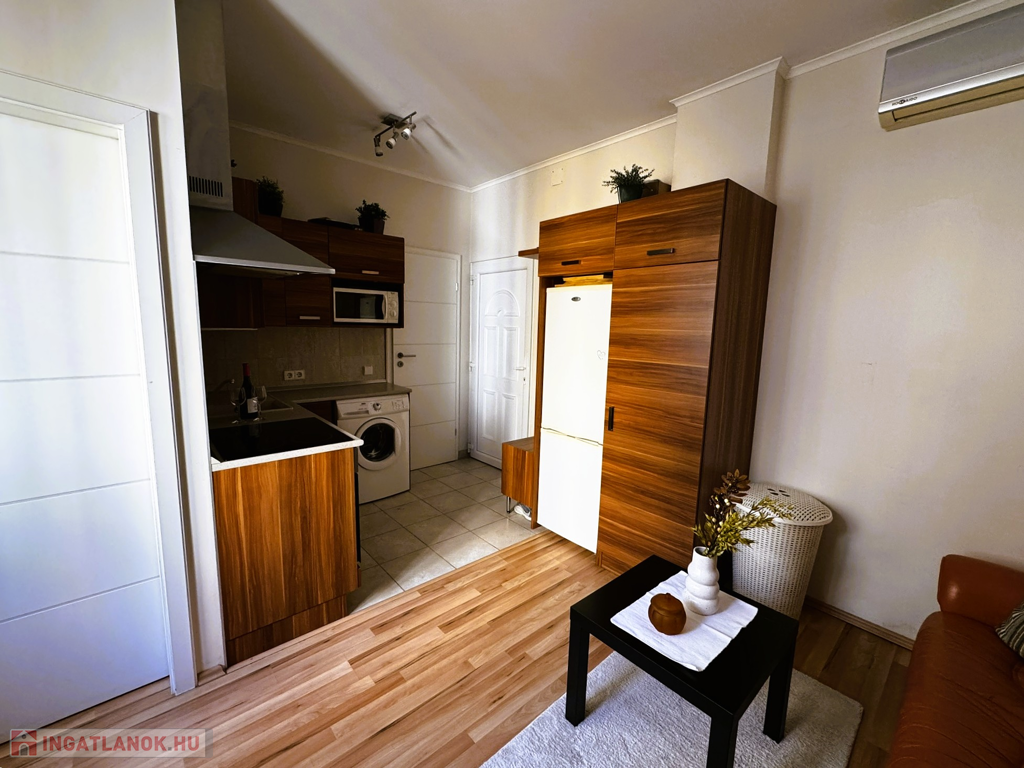 Renovated studio apartment for sale in the heart of Budapest, on Hercegprímás Street, in one of the most popular parts of Budapest, near the Basilica, we offer for sale a fully renovated studio apartment with special features. The property is located on the top floor, has an independent topographic number, and could previously have functioned as a maid's apartment or a laundry room. The 28 m² home has a practical layout and has undergone a complete renovation: the water and electricity pipes, as well as the external and internal windows and doors, have been replaced. The house is located on a level built on a flat roof, the residential unit has 10 cm of thermal insulation all around, and the roof has been reinforced with step-resistant thermal insulation and double waterproofing. The property, which is disconnected from gas, ensures a pleasant temperature with modern electric heating (premium category, NordArt Norwegian heating panels) and a cooling-heating air conditioner. Interior layout: Hall + kitchen-living room with ceramic tiles and laminated parquet Bathroom with shower and toilet Separate bedroom, quiet, facing the courtyard The bright, calm interior looks out onto the firewalls of the surrounding buildings. The elevator staircase and the courtyard facade exude a special atmosphere, reminiscent of the world of downtown ruin pubs. The facade still shows traces of shrapnel from historical times, which many young tenants particularly like. The owners of the condominium plan to renovate by selling the attic in the long term, so the environment is expected to develop further. With the addition of the attic, this small home could even become a newly built residential unit - if the owner agrees, this could represent serious investment potential. Additional information: Heating: electric heating panel, air conditioning with cooling and heating Orientation: southeast Interior height: 2.7 m Common cost: 8,000 HUF Separate meter Furnished, with built-in kitchen Elevator Parking: on the street, in a paid zone Unencumbered, 1/1 ownership Airbnb not allowed Currently used by reliable tenants who would like to stay longer, so it is also an excellent choice as an investment. If you want to live in the heart of the city center or invest in a property with a special atmosphere, search with confidence - even on weekends!
