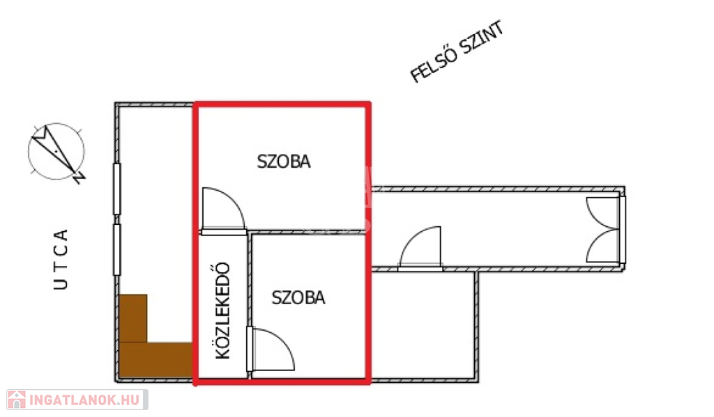 (Lakás tulajdoni lapon 45 négyzetméter és egyszobás.)