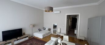 A Gross palotában, 2023-ban felújított, nagy erkéllyel rendelkező, 3. emeleti, napfényes, egyszobás lakás.