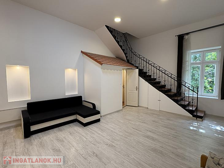 A felújítás során a nagy belmagasságnak köszönhetően állógaléria lett kialakítva, amely kiválóan növeli a hasznos életteret, és modern, mégis otthonos hangulatot teremt. Az ablakok egy szépen gondozott, zöld belső kertre néznek, így a belvárosi elhelyezkedés ellenére csend és nyugalom várja az új tulajdonost.