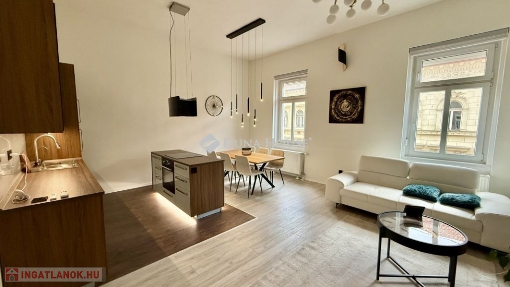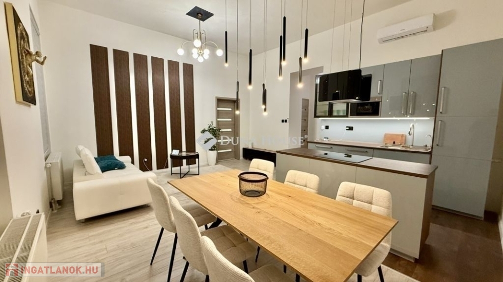 A 70 m²-es, harmadik emeleti, délidélnyugati tájolású lakás egy 1910-es években épült, liftes, rendezett társasházban található. Az ingatlan 2025-ben teljeskörű, prémium minőségű felújításon esett át, modern technológiával és kifinomult belső kialakítással.