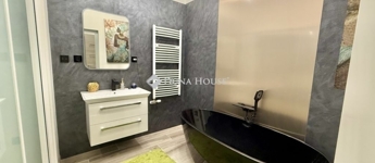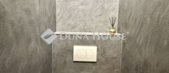 A master bedroom különlegessége az üvegfalú, PDLC fóliás (tejjüveges) fürdő, amely egyedülálló látványt nyújt. A csaptelepek digitális hőfokkijelzővel, a tükrök és világítások beépített LED rendszerrel működnek.